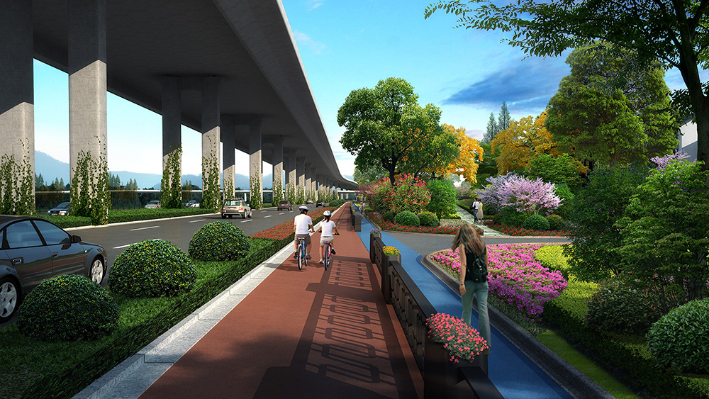 总投资(万元):49600 道路全长:8.53km 奖项:浙江省优秀园林绿化工程金奖