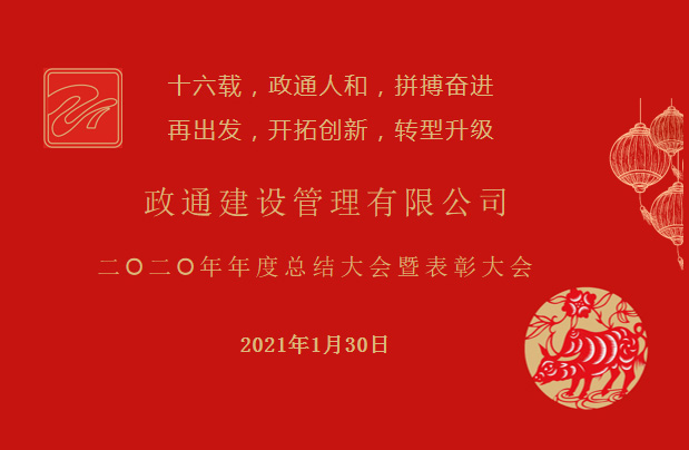 公司2020年度年终总结大会暨表彰大会圆满结束。在公司成立的十六年里,公司全体同仁风雨同舟、政通人和、拼搏奋进,2021年再出发,全体政通人开拓创新,转型升级,再创辉煌。在此我代表公司提前预祝大家新年快乐、阖家幸福!!!