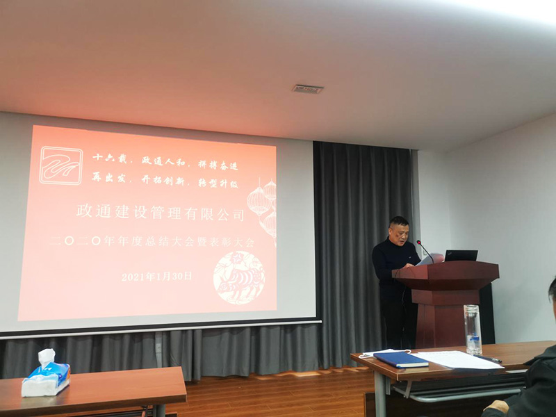 首先钱总对2020年公司取得的一系列成绩表示肯定和表扬,并希望大家继续努力拼搏,奋勇前进。钱总汇报了公司2020年发展情况,介绍了公司亮点工程,总结了全过程工程咨询情况,对公司员工提出的建议公司也提出了相应的措施。最后对公司2021年工作重点提出部署。钱总希望通过全体政通人的共同努力,将政通打造为具有核心竞争力的城市建设、运行优秀服务商。