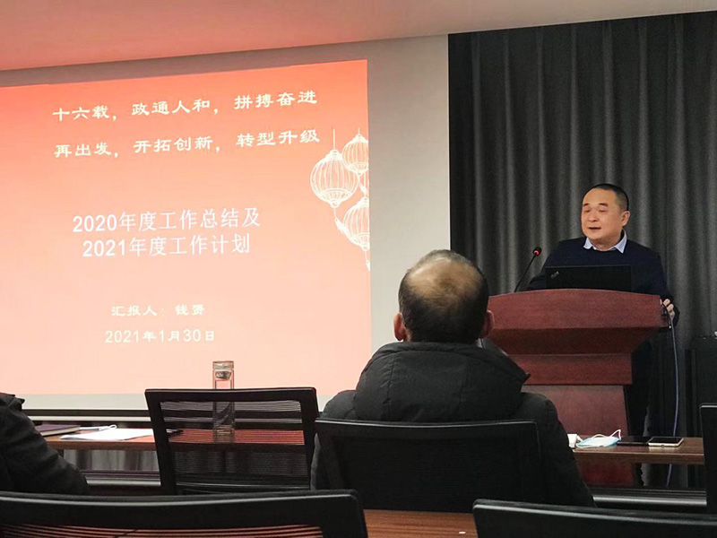 会议第五项议程是由公司总经理钱赟同志上台致词,对公司2020年工作作出年度总结及提出2021年度工作计划。