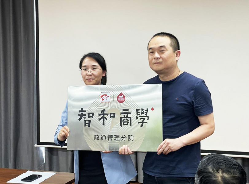最后,政通董事长钱赟和中旭公司经理傅丹静共同为政通管理智和商学院授牌,启动仪式也在全体参会人员宣读“政通宣言”中结束了。通过智和商学院这一平台,希望我司管理人员在不断学习中提高自己,在奋斗中充实自己,给企业、为社会、也为自己创造永不枯竭的资源。