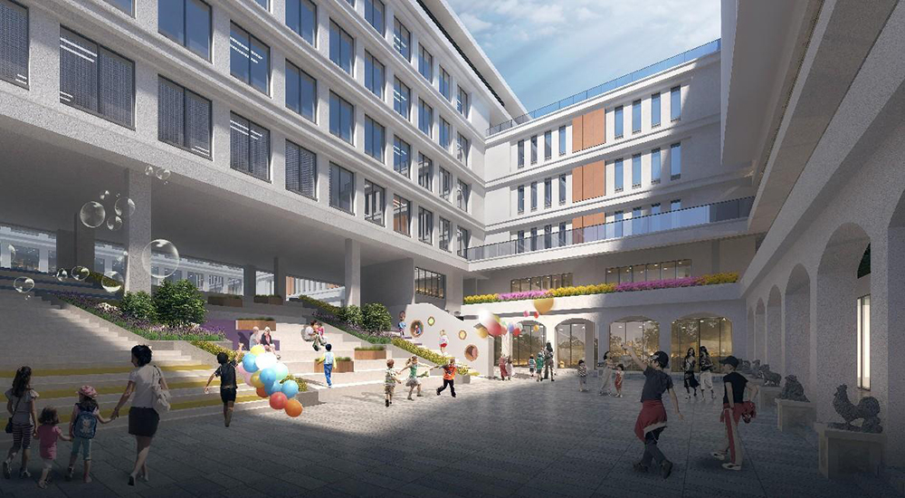 昌达路小学位于临平经济技术开发区,由OB欧宝手机中国有限公司代建。项目概算总投资28958万元,其中建安概算21887万元,24班办学规模,建筑面积44672.6㎡,地下一层,地上一至五层,地下室分区域设置接送车位区、教职工车位区等。