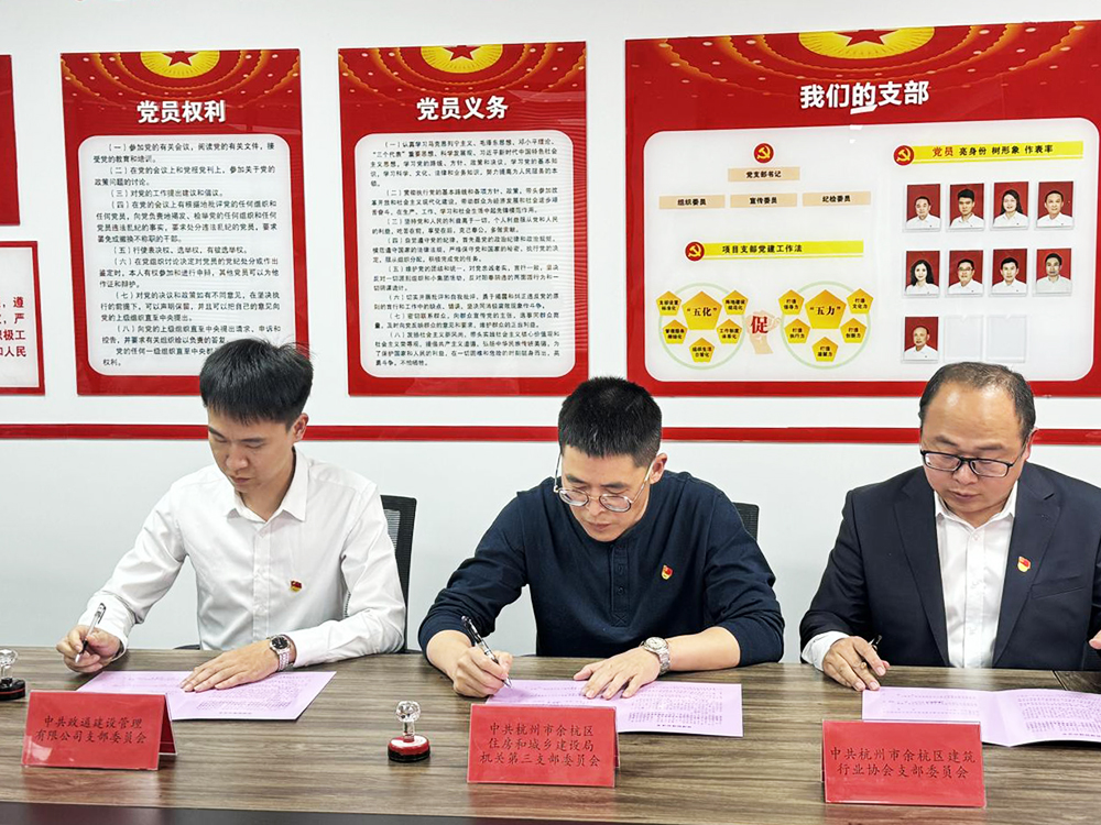 为深入贯彻落实党的二十届会议精神,以“党建联建”为动力,实现党组织优势互补,充分发挥党支部和广大党员推动发展、凝聚人心、促进和谐的作用,努力构建“资源共享、优势互补、相互促进、共同提高”的党建工作新格局,4月24日,中共杭州市余杭区住房和城乡建设局机关第三支部委员会、中共杭州市余杭区建筑行业协会支部委员会、中共OB欧宝手机中国有限公司支部委员会在OB欧宝手机中国有限公司党员活动室开展党建联建活动。