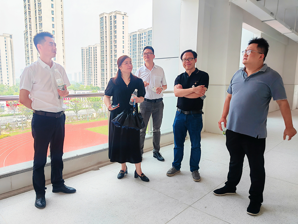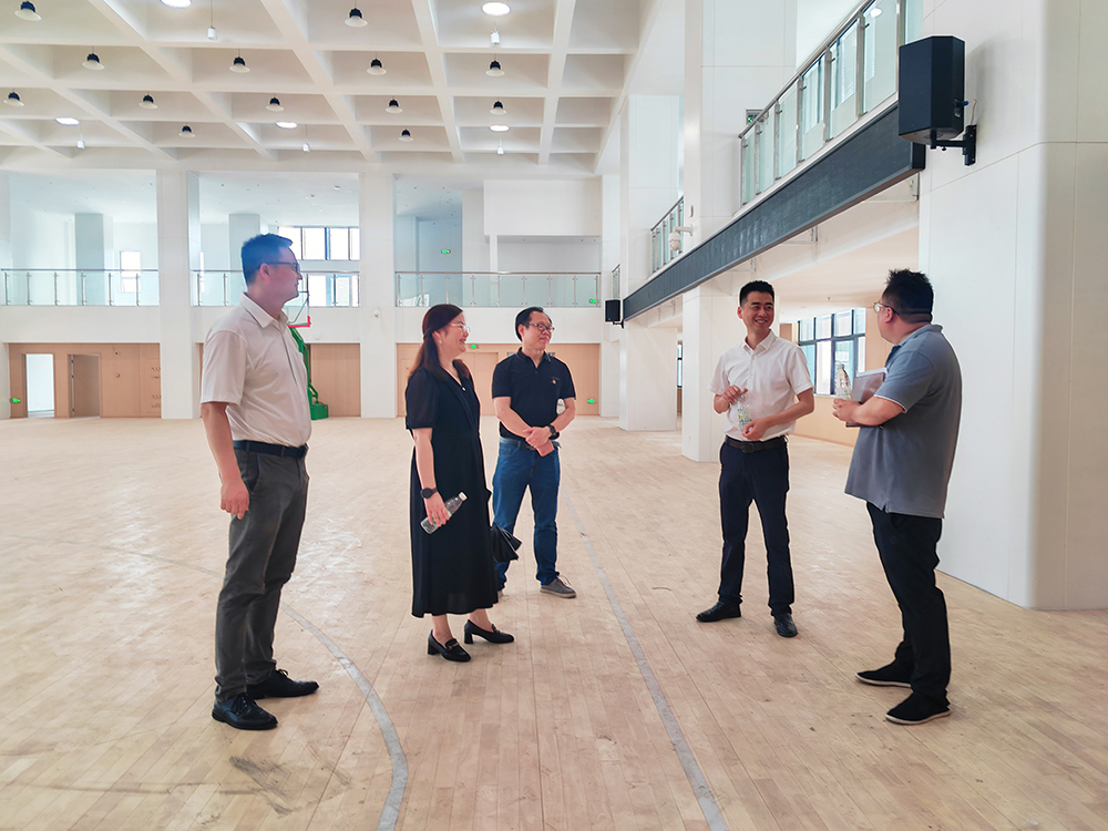 2024年6月14日上午,区教育局教育资产营运中心沈延锋主任、教育资产管理中心严慧祥副主任、临平第三小学季晓花书记、张建强副校长、杭州市开发投资有限公司陈洁总经理、建设单位项目负责人王佩文等一同参观、调研即将投入使用的昌达校区。在项目代建负责人的陪同及讲解下,对校区下沉广场、地下学生接送区、食堂及餐厅、室内运动场、教学楼游廊、报告厅东侧广场等区域参观查看,高度评价项目建设的成果。莅临各方对项目代建单位的管理表示肯定及认可,同时校方对建设单位的精心投资建设和对校园优化的支持表示感谢。