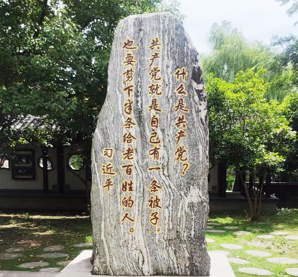 在南浔红军长征追踪馆的展厅中展示着3个红军姑娘和徐解秀大娘的雕像,3名女红军借宿徐解秀老人家中,临走时,把自己仅有的一床被子剪下一半给老人留下了。2016年10月,习近平总书记在纪念红军长征胜利80周年大会上说:“什么叫共产党,就是自己有一条被子,也要剪下半条给老百姓的人。”“半条被子”的故事反映共产党与百姓的鱼水情深、风雨同舟、生死与共,这也是中国共产党和红军取得长征胜利的根本保证,也是我们战胜一切困难和风险的根本保证。