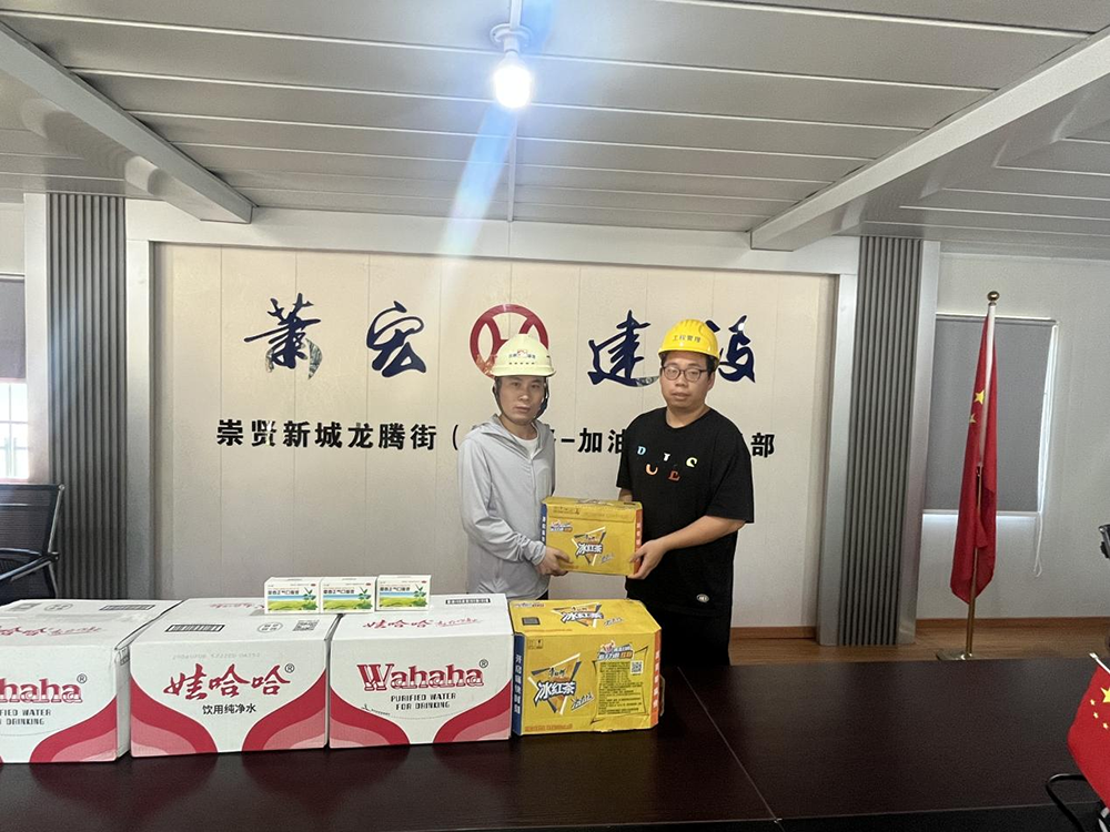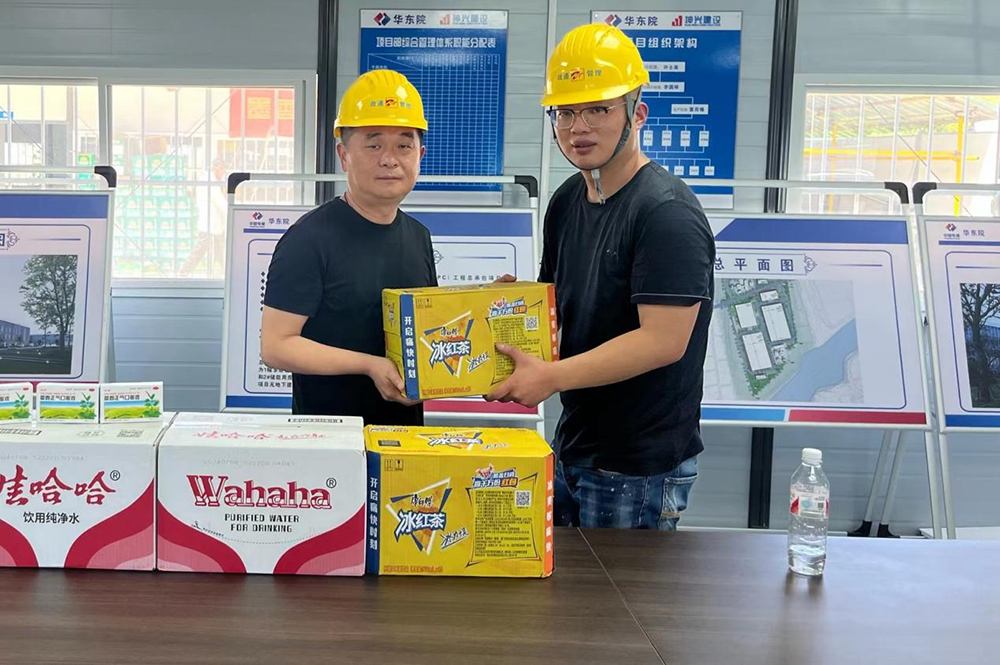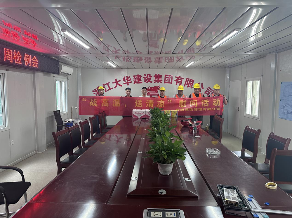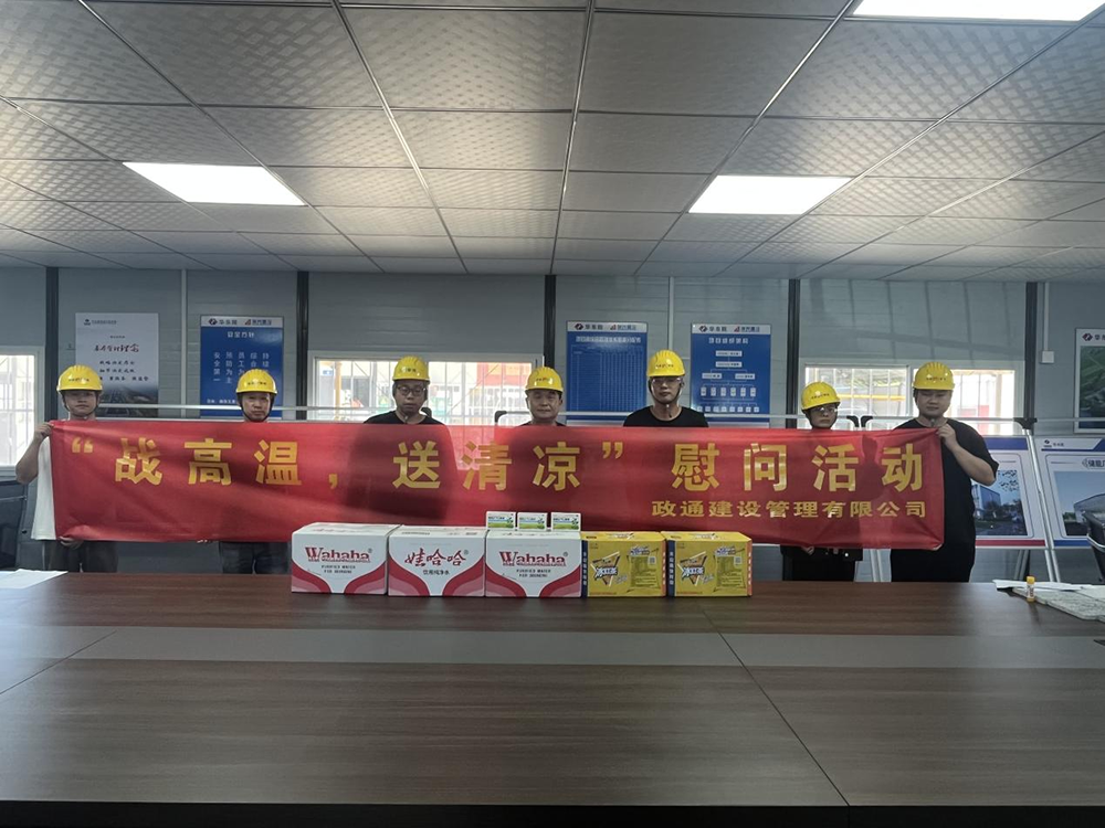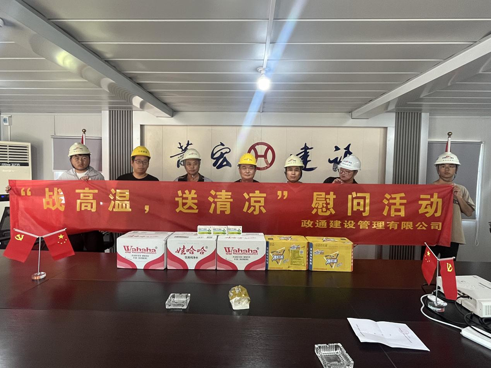 由公司总经理钱赟、党支部书记周富民、工会主席陈佳峰、公司工程部经理顾忠桂组成的高温慰问组,分别深入项目一线开展高温慰问活动,为奋战在项目一线的员工送去了藿香正气水、饮料、矿泉水等防暑解暑物资,给炎炎夏日带来了一丝清凉。
