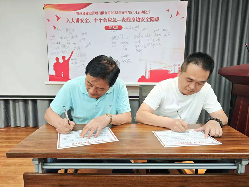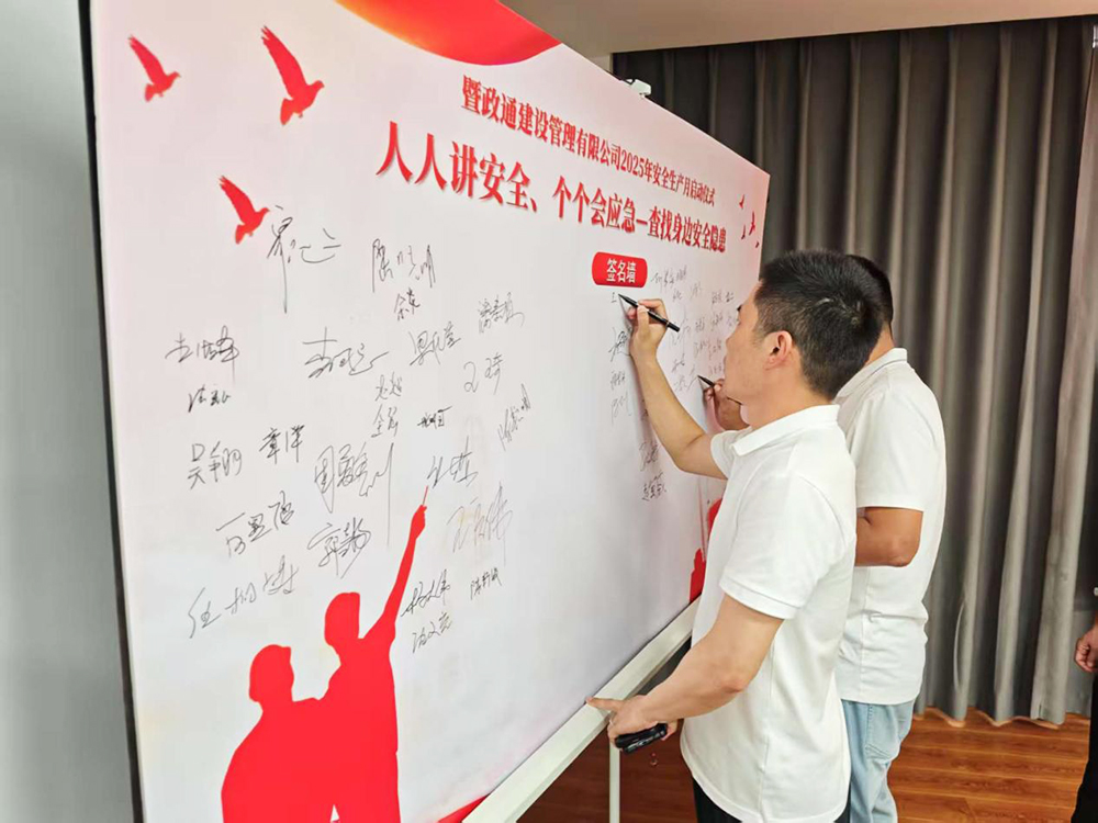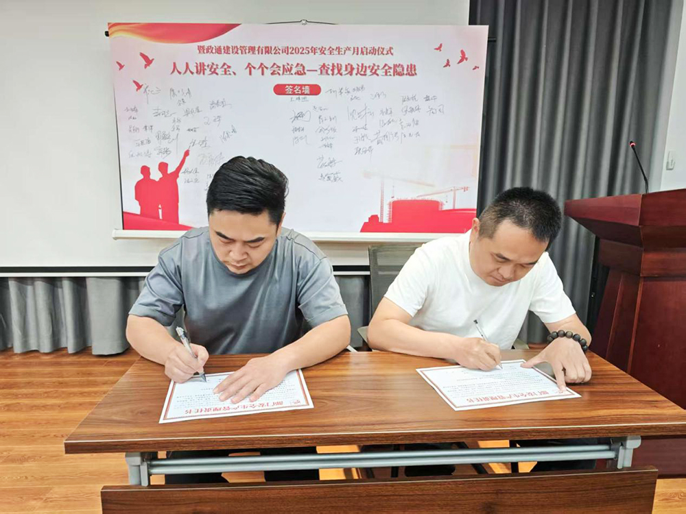 最后,全体参会人员在安全生产启动仪式板和安全责任书上郑重签名,总经理钱赟代表公司与各部门负责人、各项目总监分别签订《安全生产管理责任书》,既签下一份庄重的承诺,更表达了对安全生产工作的坚定信念和决心。